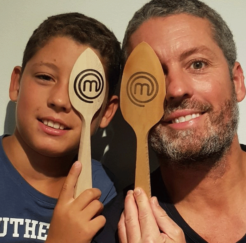 Foto junto a mi hijo, recordando un momento inolvidable cuando conseguimos nuestra cuchara de Masterchef y Masterchef Junior. Un logro y un orgullo que siempre llevaremos con nosotros.