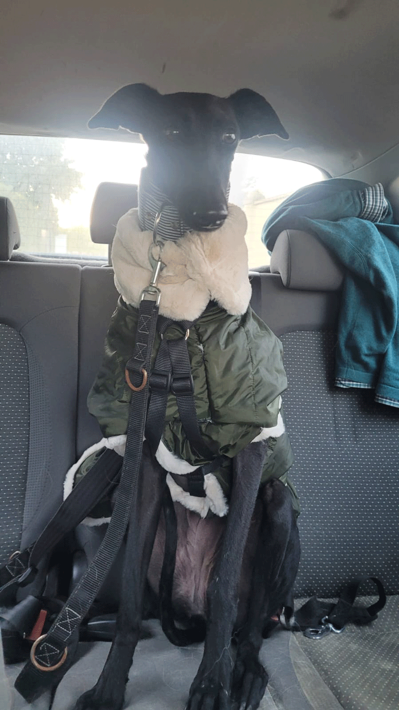 Por cierto, el de la foto es Blacky, camino a casa con sus nuevos dueños.